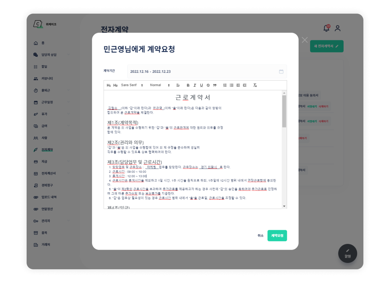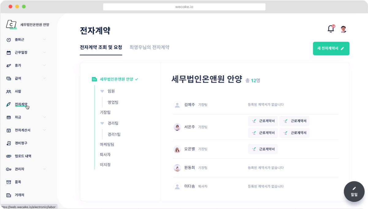 믿고 사용하는 전자계약, wecake