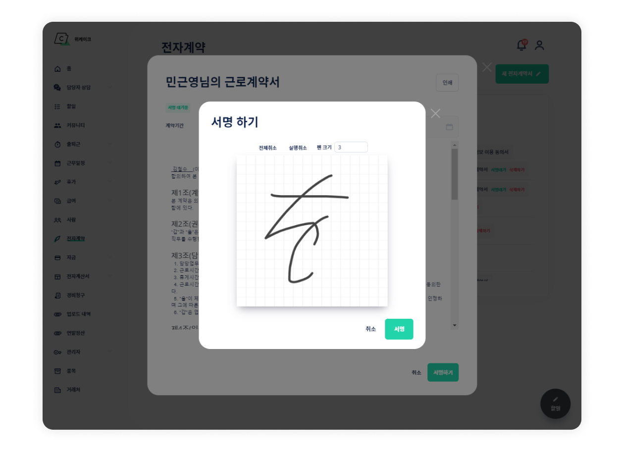 비밀유지서약서, 개인정보제공동의서 등 전자 서명을 통한 전자계약 가능