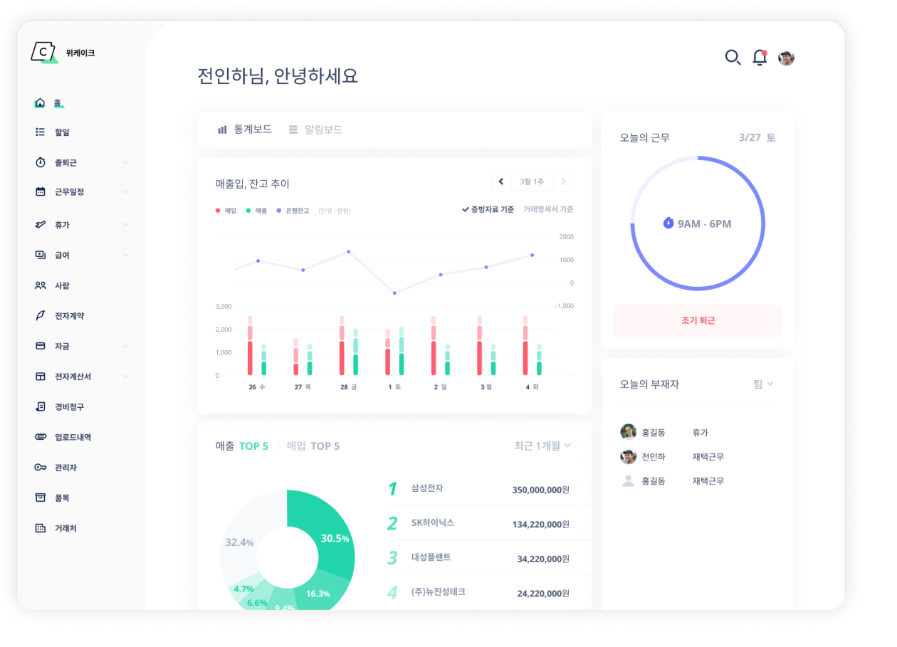 보드를 사용하여 매출·매입, 발급내역 확인 가능