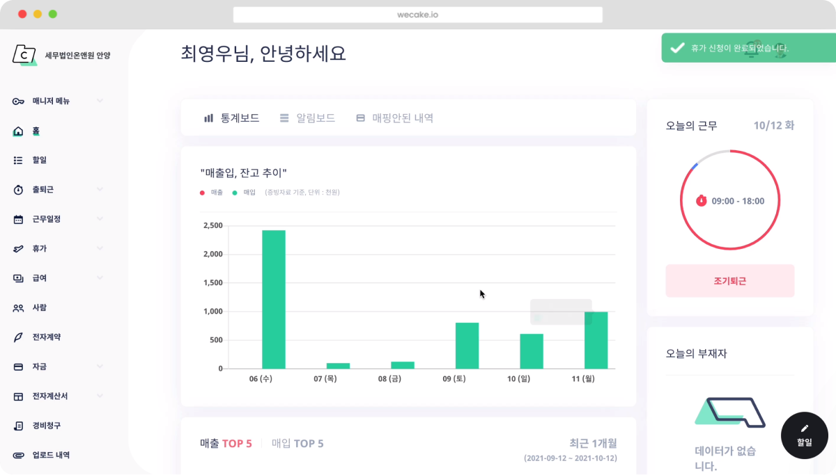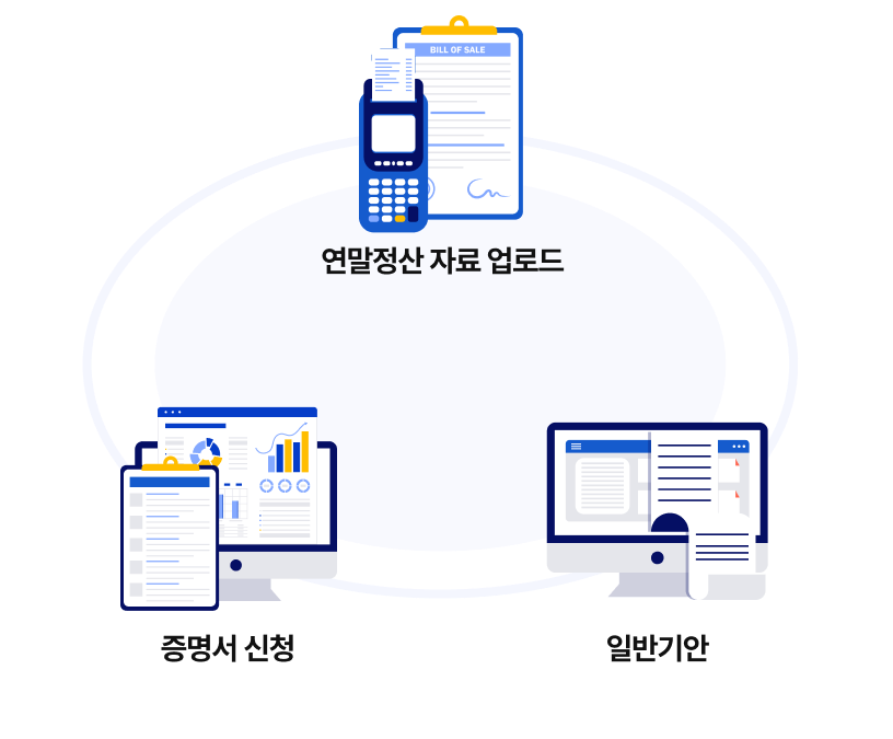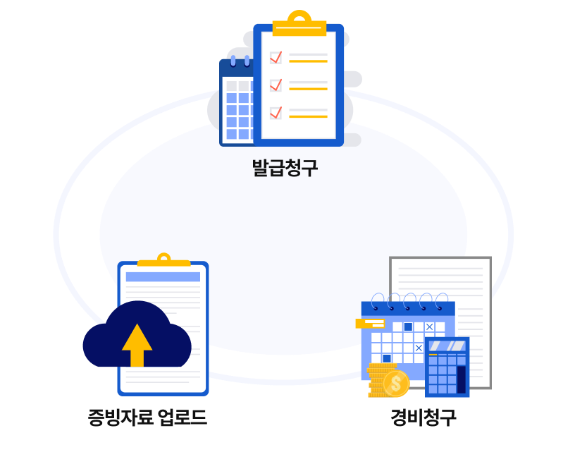 각종 증빙 자료 및 연말정산 자료 업로드, 거래명세서, 경비청구내역 등을 한눈에 확인할 수 있으며, 세금계산서와 영수증 발행 요청 역시 편리합니다.